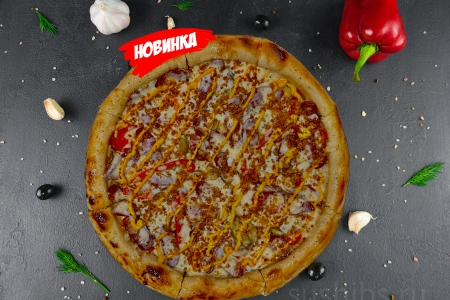 Вес: 1035/600/700 Баварский соус гармонично дополняет охотничьи колбаски, а хрустящий лук и корнишоны добавляют пикантности. Нежная моцарелла, сладковатый болгарский перец и лёгкая горчичная нотка создают идеальное гастрономическое полотно. Побалуйте себя «Баварской» пиццей — настоящим кулинарным путешествием в сердце Баварии!