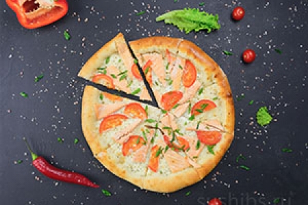 Вес: 1100/770/870 гр. Нежная семга и сливочный соус в сочетании со свежими томатами, зеленью и сыром моцарелла.