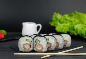 Вес: 300/220 гр. Этот ролл подарит вам истинное гастрономическое наслаждение. Нежный копчёный лосось, свежий огурчик, сливочный сыр и водоросли нори — классическое сочетание, которое никого не оставит равнодушным.