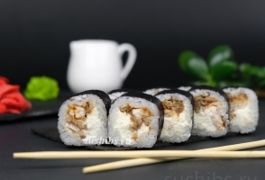 Вес 170 гр.Классические роллы Маки со сливочным сыром и филе Угря.
