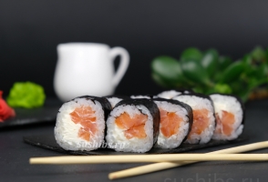 Вес 170 гр.Маки со сливочным сыром и филе копченного лосося.
