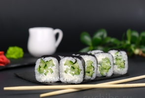 Вес 170 гр.Классические роллы Маки со сливочным сыром и огурчиком.