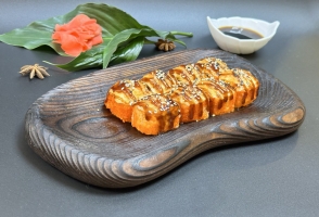 230 гр. Ролл ЯкиФрай, это сочетание сливочного сыра, свежего томата, нори и риса, а сверху — аппетитный запечённый бекон. Ролл украшен капелькой соуса барбекю и жареным луком кранч. Попробуйте это блюдо, если любите яркие вкусовые сочетания!