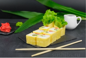 Вес: 330/190 гр. Нетрадиционный ролл в мексиканском стиле. В сырную лепешку завернуты: филе копченого цыпленка, сливочный сыр, спелый помидор и маринованный огурчик и нежный лист салата Айсберг.
