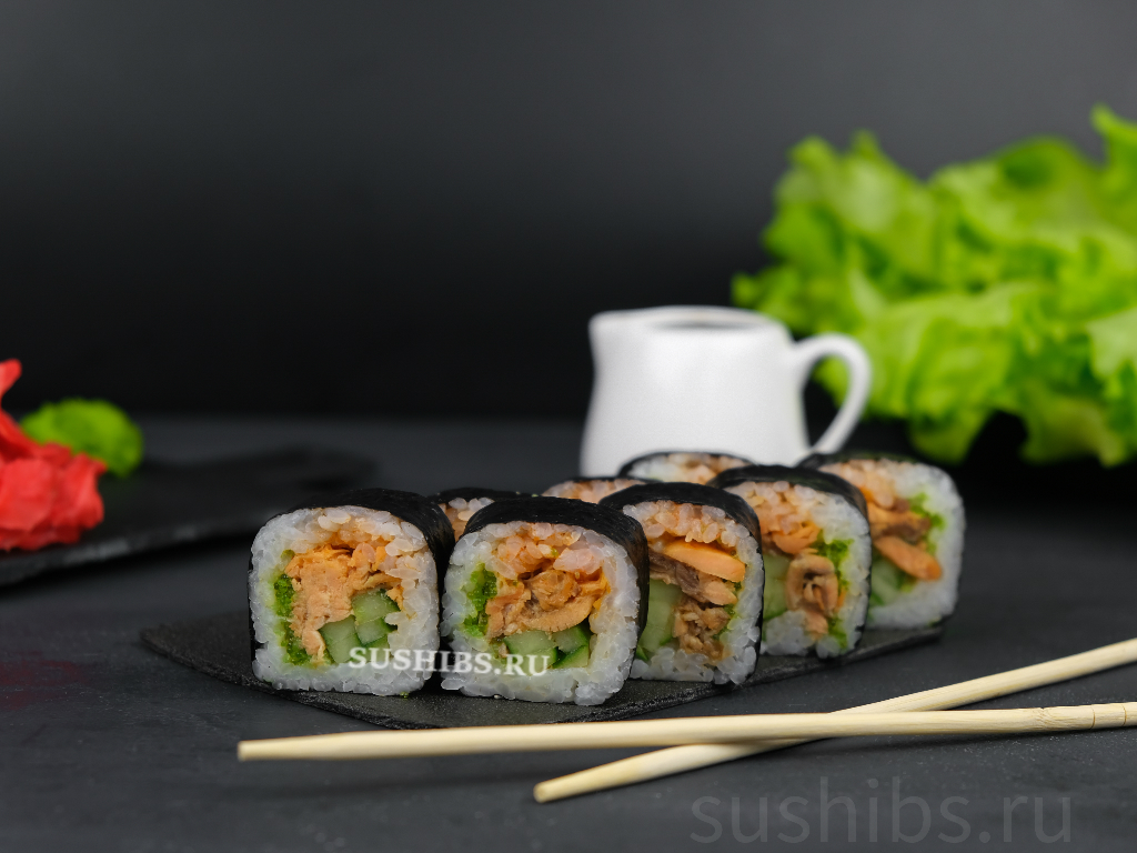 Вес: 280/220 гр. Ролл без сыра! Этот ролл обладает ярким и многогранным вкусом. Сочетание нежного лосося терияки, хрустящего огурца и пикантного спайси соуса дарит ему неповторимый вкус. А рис и нори добавляют блюду насыщенности и аромата.
