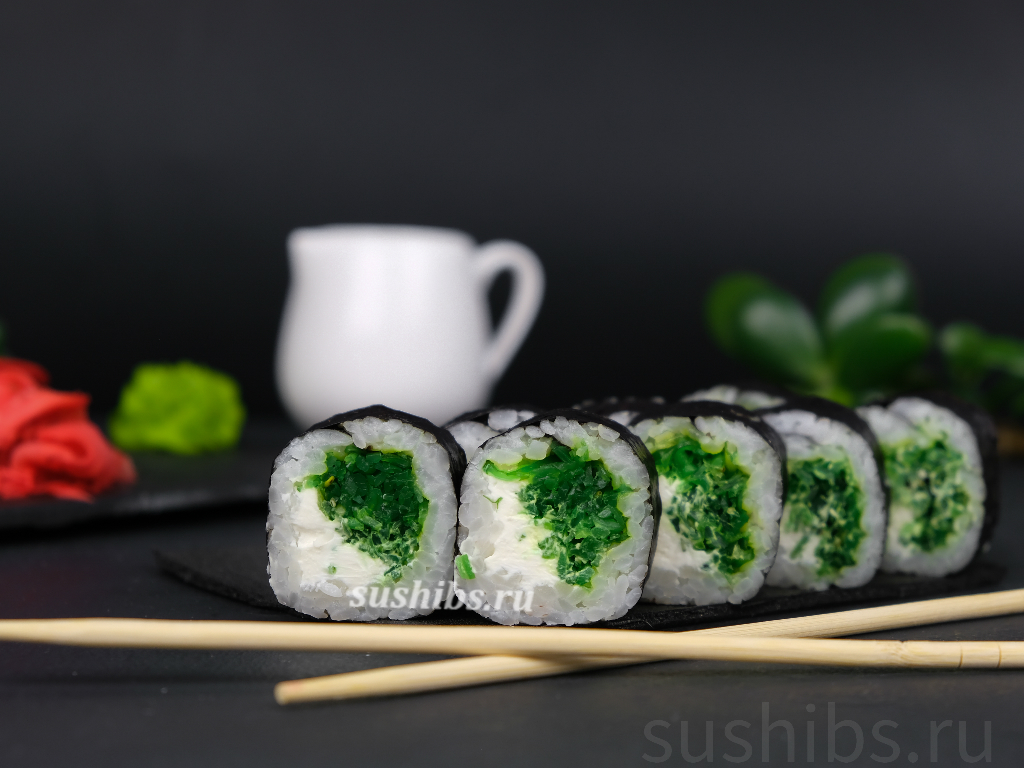 Вес 170 гр.Классические роллы Маки со сливочным сыром и Чука салатом.Ролл поливается ореховым соусом и посыпается кунжутом)