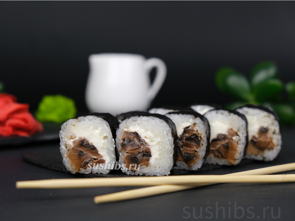 Вес 170 гр .Классические роллы Маки с нежным сливочным сыром и Шампиньонами.