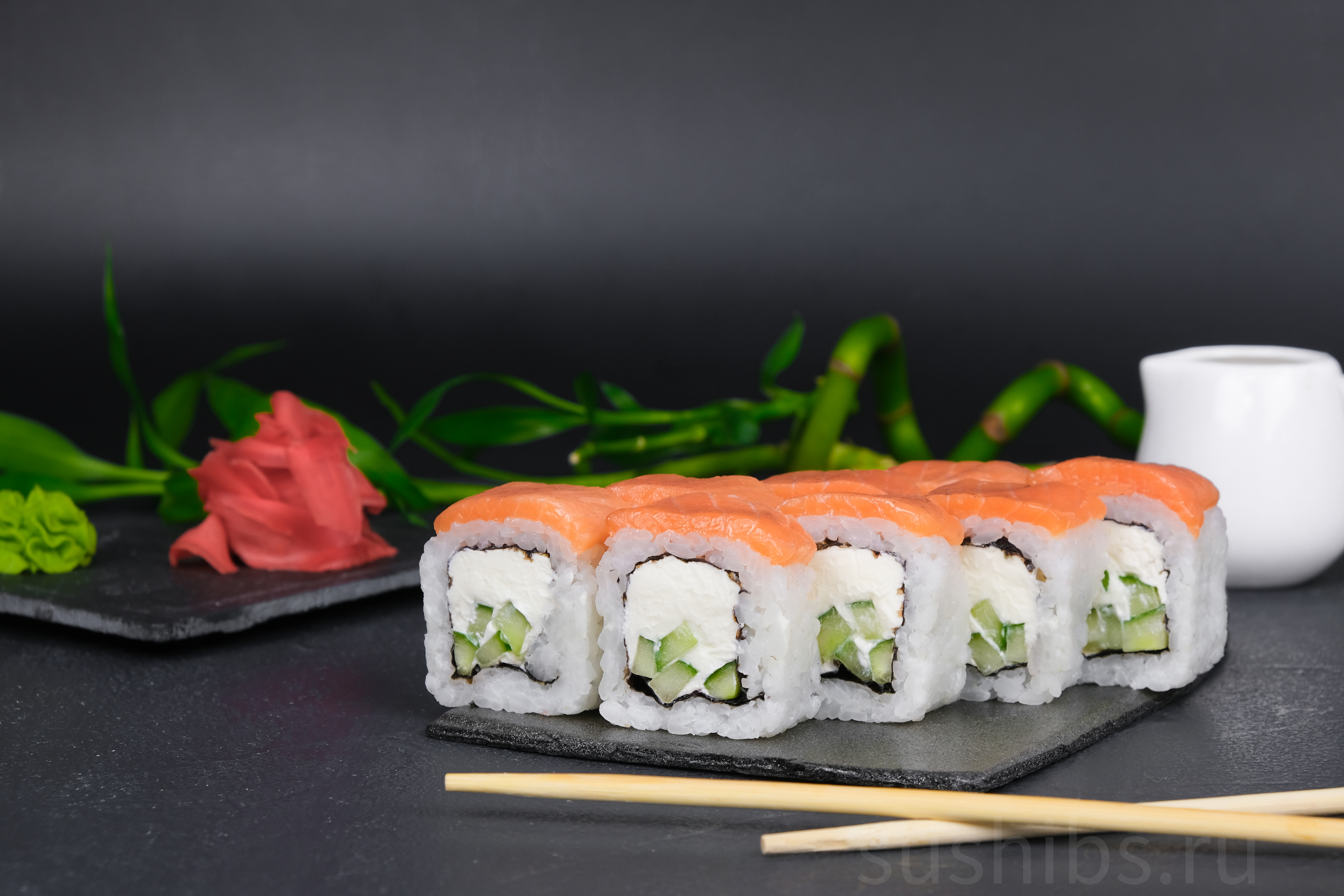 Вес: 270 гр. Классический ролл из свежего лосося, тающая мягкость сливочного сыра и хрустящего огурчика.
