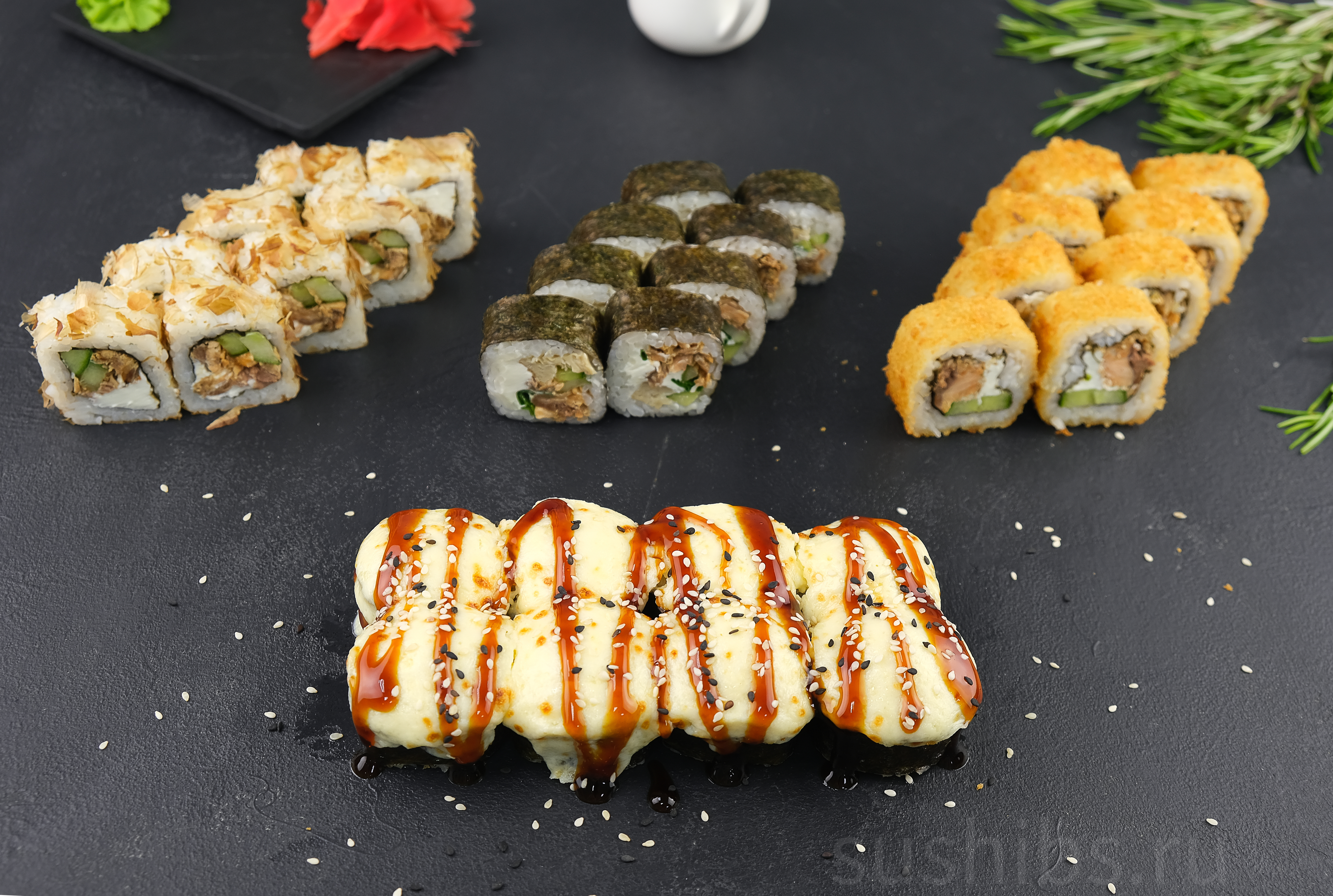 32 шт. Вес 930 гр. Состав: Запеченный с Лос Терияки,Темпура Гриль,Бонито,Окинава.