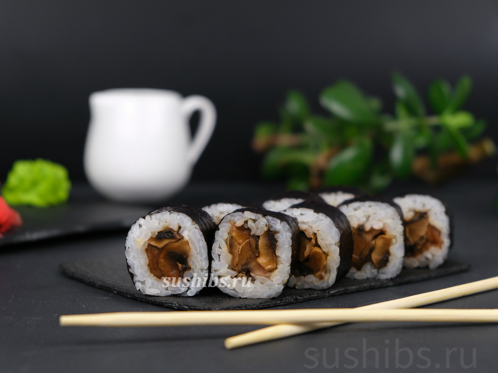 130 гр. Классический ролл в нори с ароматными жаренными грибами (шампиньоны).
