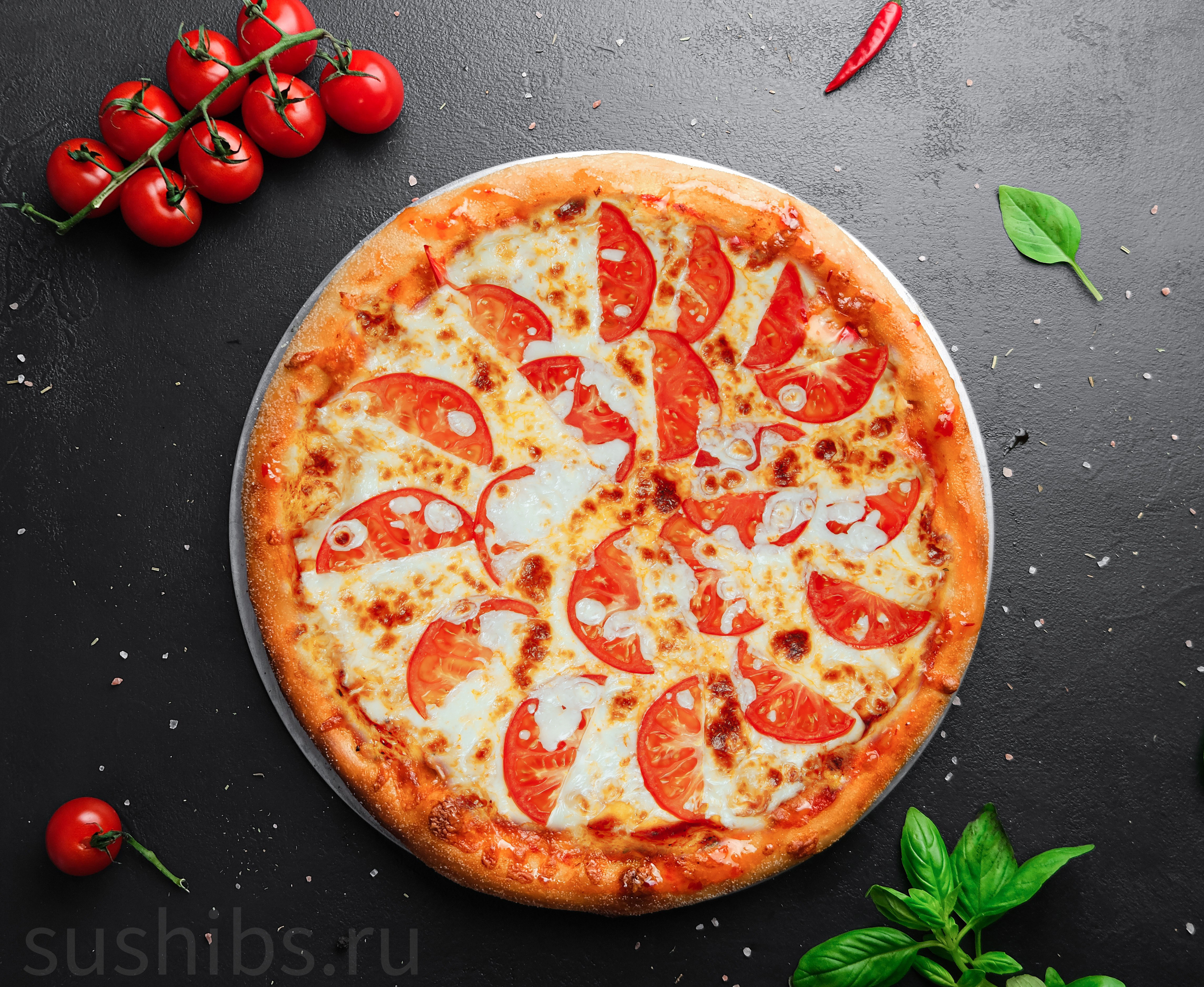 Вес: 1030/720/820 гр. Просто классика! Фирменный соус с ароматными травами, помидор и много сыра моцарелла.