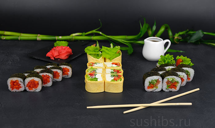 24 шт. 680/490 гр. Мексика с овощами / Овощной / Маки Болгарский перец. (Можно заменить на Маки огурец).(Скидки и акции на набор не распространяются.)