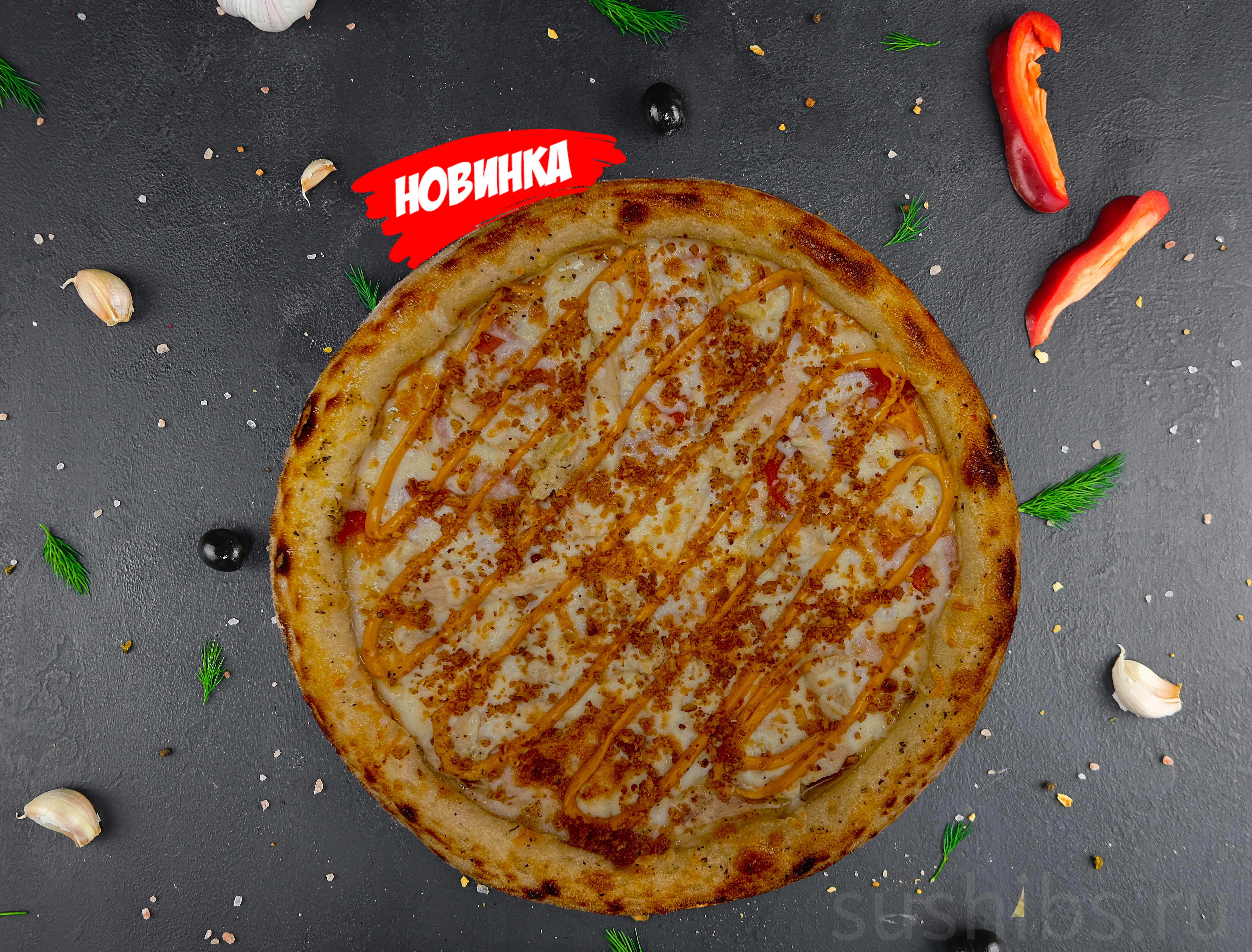Вес:1200/920/820 Пицца «Гриль» — сочная пицца с насыщенным вкусом В ней гармонично сочетаются ароматный соус гриль, хрустящий бекон, сочные помидоры, нежное филе цыплёнка, лук кранч и тягучая моцарелла. Это идеальное блюдо для сытного обеда или ужина!