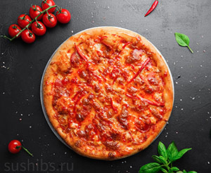 Вес 740 гр. Классический соус,острые колбаски Пепперони,грудка копченая,Перец Болгарский