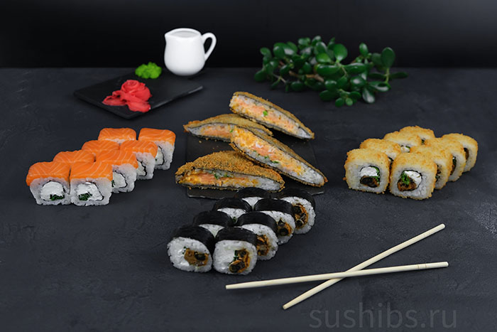Вес 1079 гр.32 шт. Состав:Ролл филадельфия ,Холодный ролл с мидиями и луком,Сэндвич с лососем,Темпура с мидиями.(Внимание,только самовывоз!)