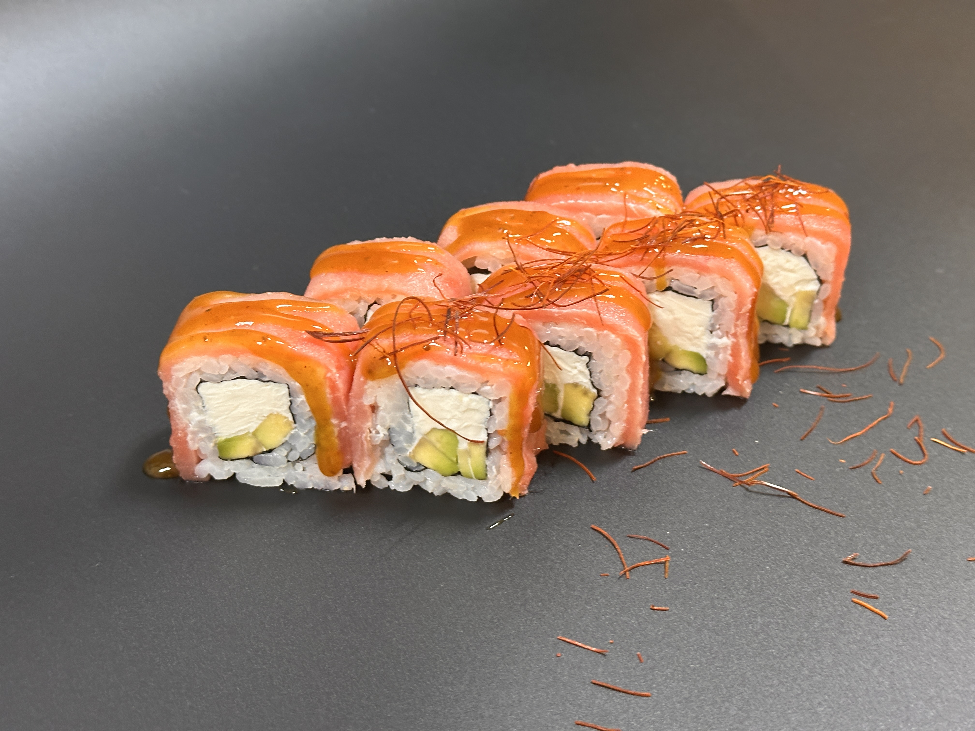 Вес 346/256гр. Сочетание нежного тунца, сливочного сыра и мякоти авокадо, дополненное пикантным соусом манго-чили. Ролл относится к категории роллов и точно придётся по вкусу любителям ярких и запоминающихся сочетаний.