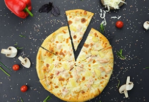 Вес: 1110/780/880 гр. Удачное сочетание копченой курочки и сочного ананаса с нежным сыром моцарелла и нежным сливочным соусом.