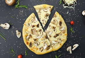 Вес: 1230/850/950 гр. Яркий и насыщенный грибной вкус, который понравится многим. Состав: тесто, нежный сливочный белый соус, моцарелла, шампиньоны,сыр .