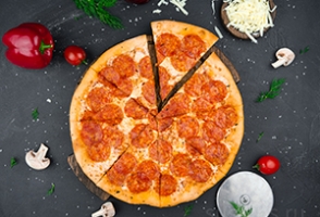Вес: 940/720/620 гр.+-% Всё как в Италии, ничего лишнего! Сыр моцарелла, острая колбаска пепперони, фирменный красный соус с ароматными специями.