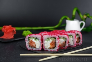 Вес: 310/230 гр. Сливочный сыр в сочетании с хрустящим огурчиком ,филе нежного лосося , украшенный икрой масаго ( цвет может меняться)